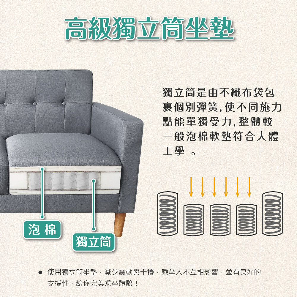 材質:貓抓皮/亞麻布/實木/獨立筒