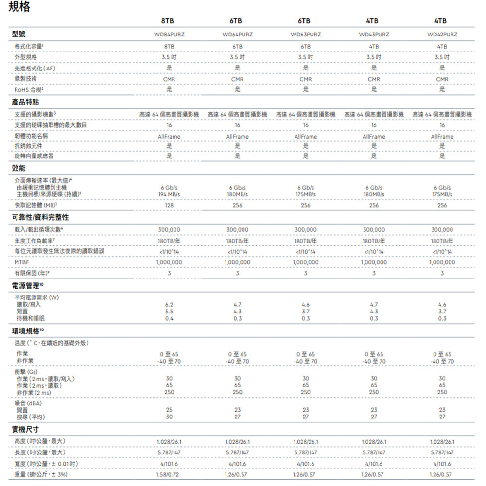 昌運監視器 WD63PURZ (新型號 WD64PURZ) WD紫標 6TB 3.5吋監控專用硬碟