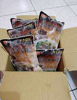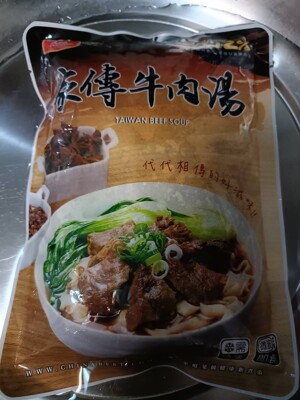 成分:牛肉、水、牛油、青蔥、醬油、牛骨粉、牛肉調味料FT-29A(食鹽、雞抽出物、豬肉抽出物、L-麩酸鈉、焦糖色素1類、檸檬酸、琥珀酸二鈉、5‘-次黃嘌呤核苷磷酸二鈉、5’-鳥嘌呤核苷磷酸二鈉、糊精、馬鈴薯澱粉、月桂、芹菜、香料)、蕃茄、洋蔥、辣豆瓣醬(黃豆(基因改造)、水、辣椒、胺基酸(水、大豆(高蛋白豆片)、食鹽)、砂糖、食鹽、紅蘿蔔、L-麩酸鈉、大豆沙拉油、香油(大豆油、芝麻油)、玉米糖膠、檸檬酸、防腐劑(己二烯酸、苯甲酸)、DL-蘋果酸鈉、羧甲基纖維素鈉、多磷酸鈉、抗氧化劑(異抗壞血酸鈉、維生素E)、乙醯化己二酸二澱粉、醋磺內酯鉀(甜味劑)、琥珀酸二鈉、甘靈-B(檸檬酸鈉、乳糖、甘草酸鈉(甜味劑))、乳酸90%(乳酸、水)、5‘-次黃嘌呤核苷磷酸二鈉、5’-鳥嘌呤核苷磷酸二鈉、水性辣油精(辣椒(Capsicum annuum L.)的萃取物、聚山梨醇酐脂肪酸酯八十(乳化劑)、精製葵花油)、水性辣椒紅(紅椒色素(paprika capsicum annuum L.)的萃取物、乳化劑(脂肪酸甘油酯、聚山梨醇酐脂肪酸酯八十)、偏亞硫酸氫鈉、多磷酸鈉、食用色素六號)、沙茶醬(黃豆油、糙米皮、扁魚、紅蔥頭、糖、食鹽、辣椒粉、薑黃粉、辣椒紅、烏胡椒、花椒、桂通、大茴、調味劑(L-麩酸鈉、琥珀酸二鈉、5‘-次黃嘌呤核苷磷酸二鈉、5’-鳥嘌呤核苷磷酸二鈉)、米酒、牛肉調味料GF(香料(酵母抽出物、黃豆水解蛋白、食鹽、L-麩酸鈉、5‘-次黃嘌呤核苷磷酸二鈉、5‘-鳥嘌呤核苷磷酸二鈉、洋蔥粉、葡萄糖、D-木糖、可可粉、油菜籽油、鹽酸硫胺明(維生素B1)、香料、多磷酸鈉、中鏈三酸甘油酯)、豬肉抽出物、麥芽糊精、酵母抽出物、水、焦糖色素)、蒜仁、二砂、辣椒、紅蔥頭、冰糖、黃汁粉(麵粉、馬鈴薯澱粉(馬鈴薯澱粉、脂肪酸甘油酯)、棕櫚油、鹽、L-麩酸鈉、糖、香料、洋蔥粉、麥芽糊精、番茄粉、醬油粉(醬油、糊精、鹽)、酵母萃取物(酵母萃取物、鹽)、玉米糖膠、焦糖色素、調味劑(5‘-次黃嘌呤核苷磷酸二鈉、5’-鳥嘌呤核苷磷酸二鈉))、雞粉(食鹽、麥芽糊精、雞肉抽出物、L-麩酸鈉、蔗糖、水解動物蛋白、香料(酵母抽出物、L-麩酸鈉、5‘-次黃嘌呤核苷磷酸二鈉、5’-鳥嘌呤核苷磷酸二鈉、食鹽、全蛋粉、油菜籽油、香料、胺基乙酸、DL-蛋胺酸、鹽酸硫胺明(維生素B1)、奶油、酒精、葵花油、麥芽糊精、脂肪酸甘油酯、阿拉伯膠、混合濃縮生育醇(抗氧化劑))、雞油、分離大豆蛋白、二氧化矽、5‘-次黃嘌呤核苷磷酸二鈉、5’-鳥嘌呤核苷磷酸二鈉)、鹽、大豆沙拉油、焦糖色素、薑、八角、辣椒粉、牛晶粉(L-麩酸鈉、食鹽、蔗糖、黃豆水解蛋白、麥芽糊精、洋蔥粉、沙茶粉 、豬肉抽出物、雞肉抽出物、焦糖色素、5‘-次黃嘌呤核苷磷酸二鈉、5’-鳥嘌呤核苷磷酸二鈉、香料、琥珀酸二鈉)、鮮保利VN-101(醋酸鈉(無水)、脂肪酸蔗糖酯)、白胡椒、黑胡椒、大紅袍花椒粒、花椒粒、甘草片、肉桂、白豆蔻、丁香、油性辣椒紅(葵花油、紅椒萃取物)、小茴香子、陳皮、月桂葉。