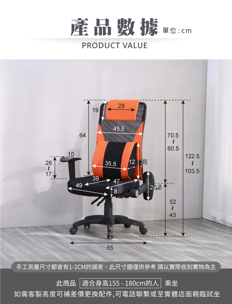 商品材質:網布、PP+PU扶手、PP塑膠五爪、PP滑輪、泡棉
