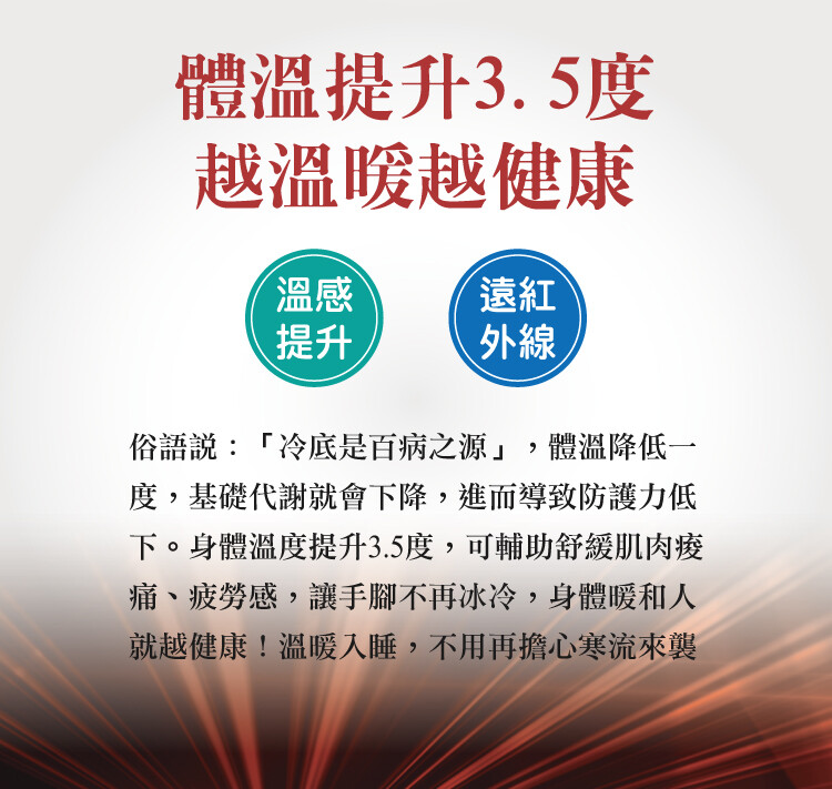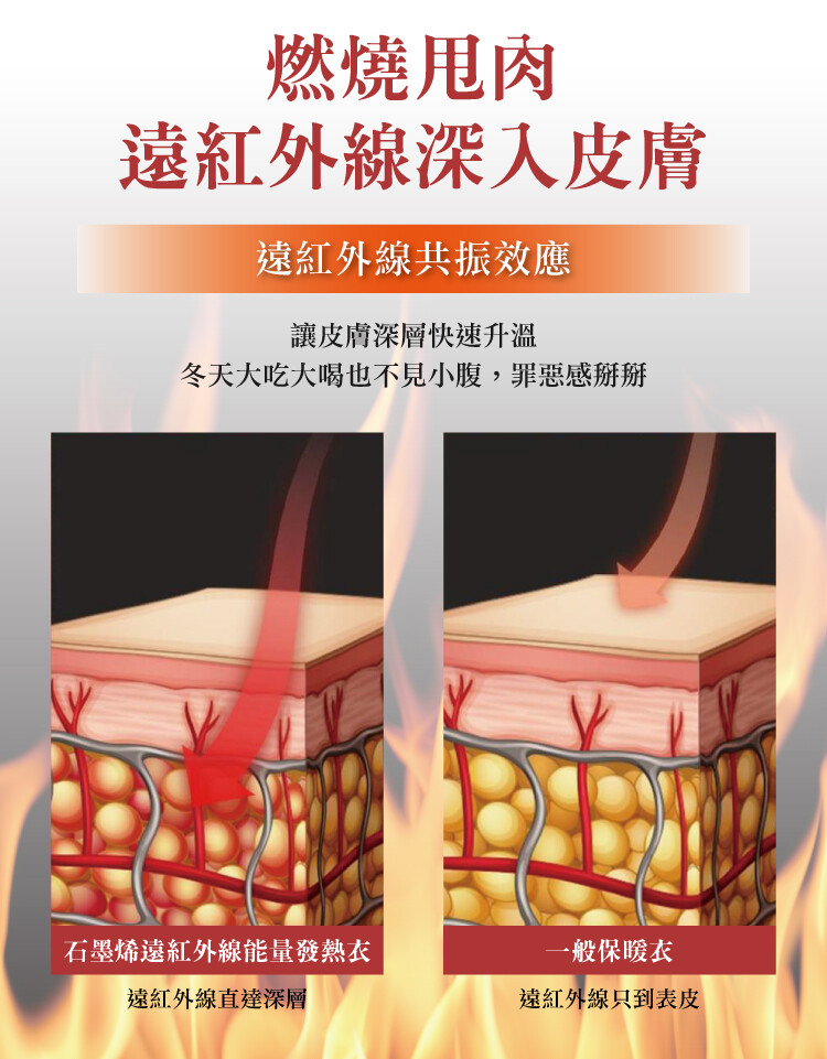 遠紅外線深入皮膚,產生共振效果讓皮膚快速升溫,持續發熱保暖