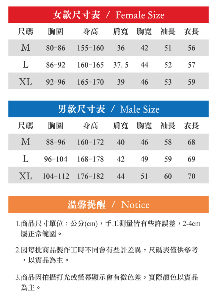 尺寸:男M/男L/男XL/女M/女L /女XL(詳細資訊在商品圖片內)