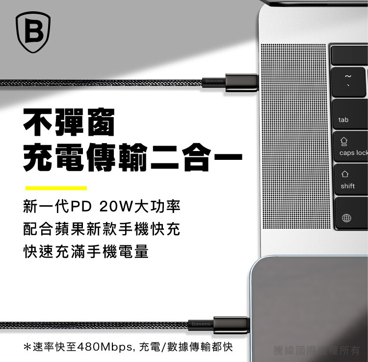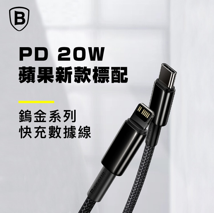 Baseus倍思 鎢金PD20W Type-C to Lightning 1米快充線+HANG液晶顯示20W PD+QC3.0快速充電器-黑