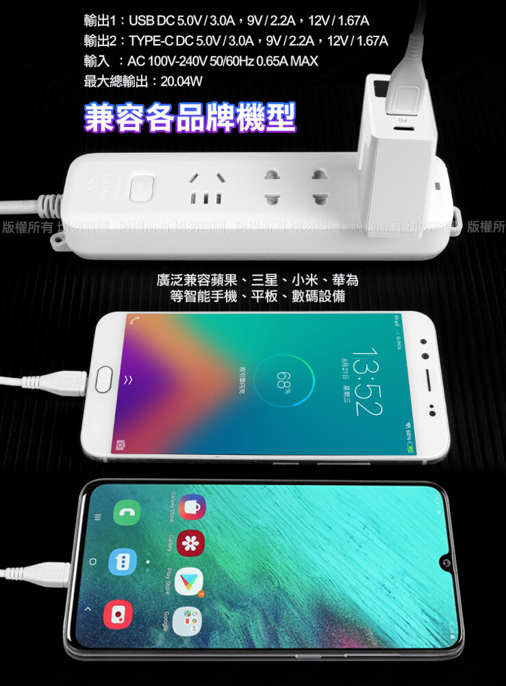 最大輸出功率:20.04W,USB+Type-C 5V時單Port最大輸出電流1.5A
