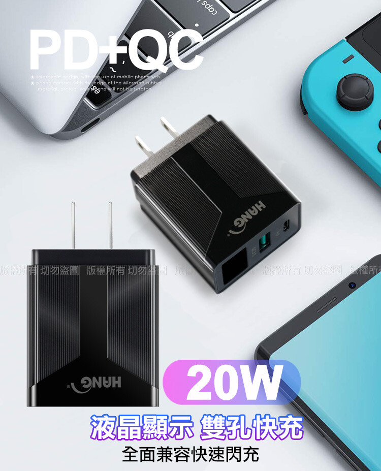 商品內容物:液晶顯示20W PD+QC快速充電器*1+鎢金PD20WC to Lightning一米快充線*1
