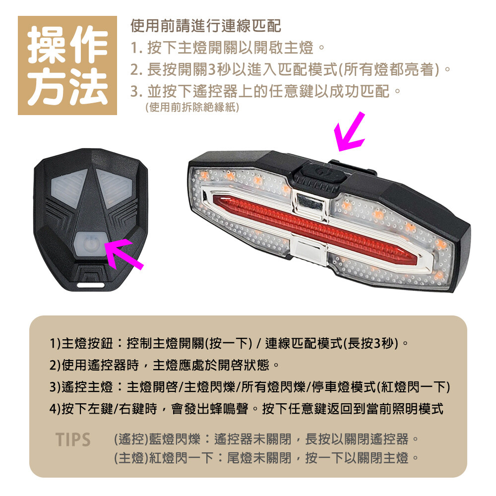 ◆內容:尾燈 + 無線遙控器 + usb充電線 + 彈力固定繩/座x2組