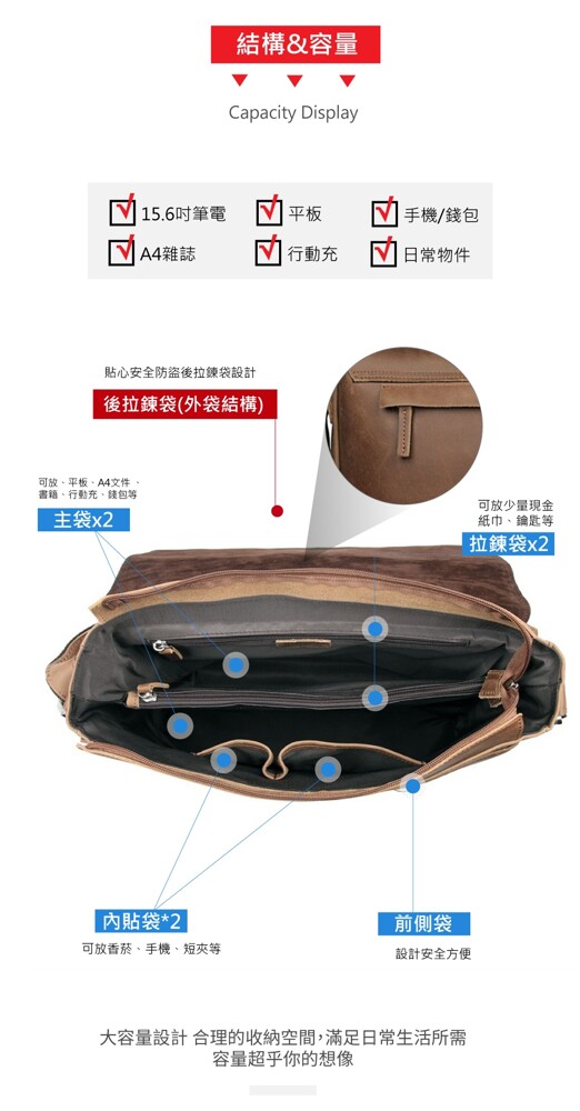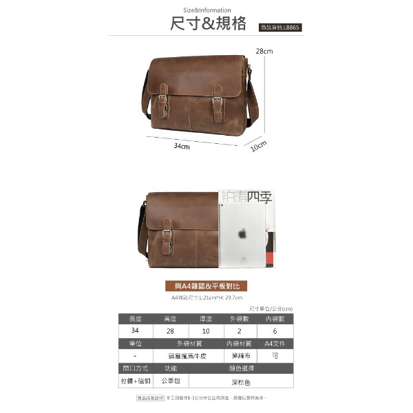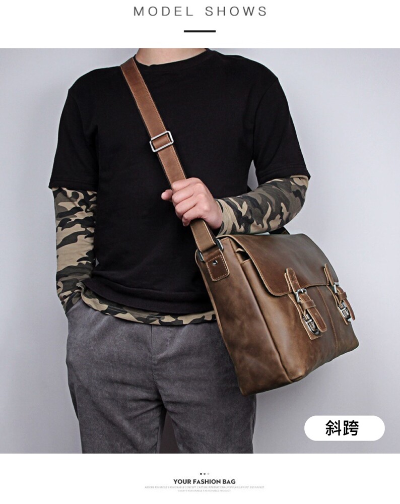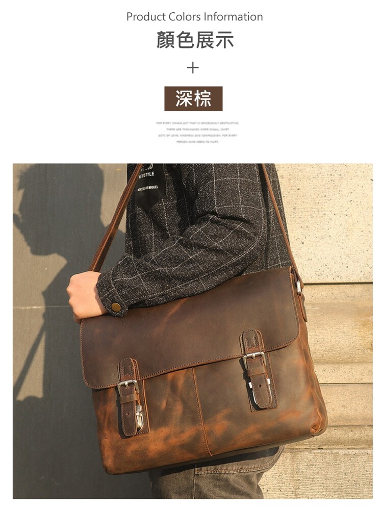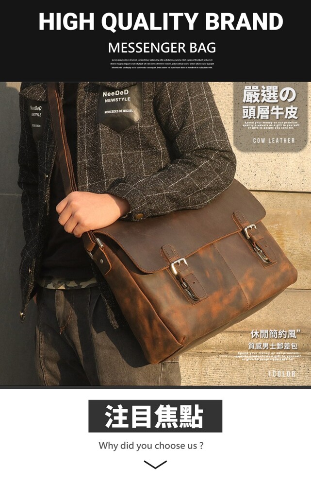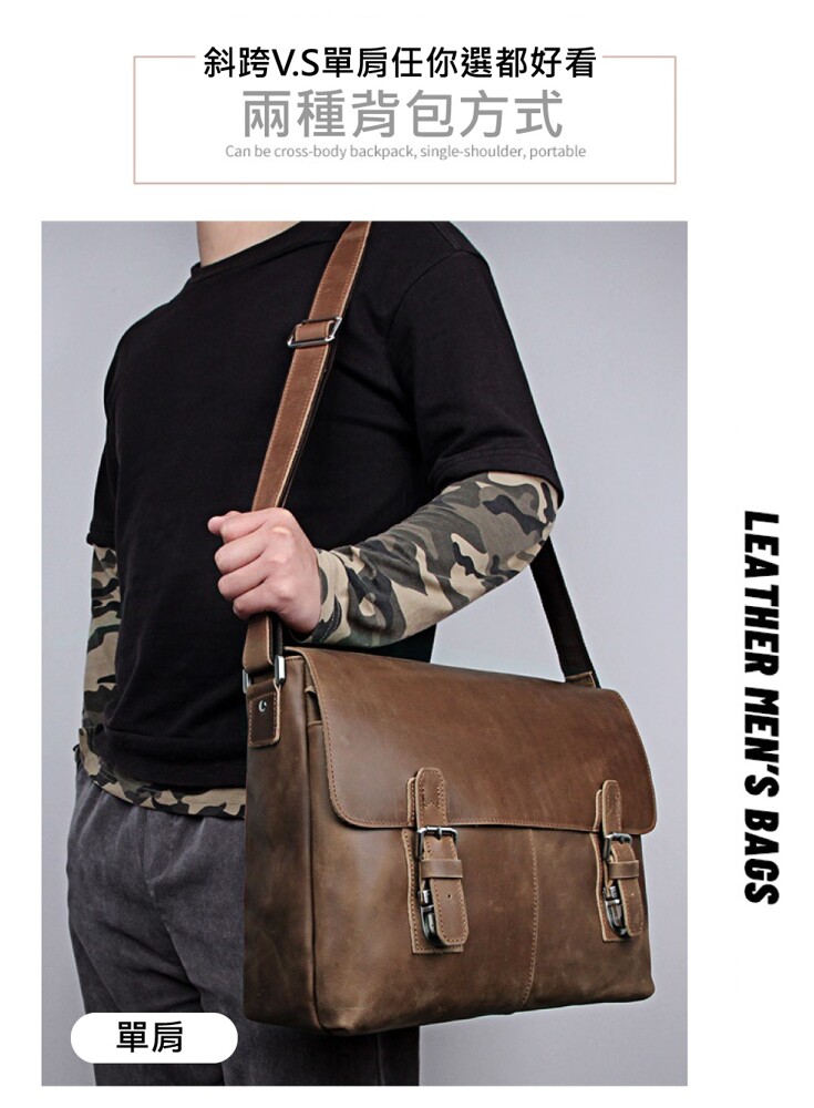 【喜番屋】真皮頭層瘋馬牛皮男士復古郵差包肩背包男包【LB865】