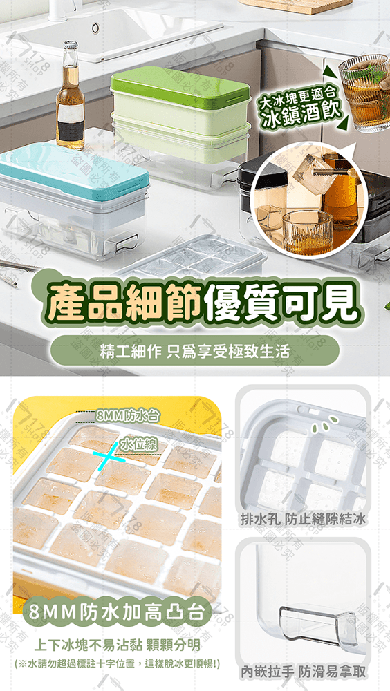 🔺8mm防水加高凸台,冰塊不易沾黏,顆顆分明!