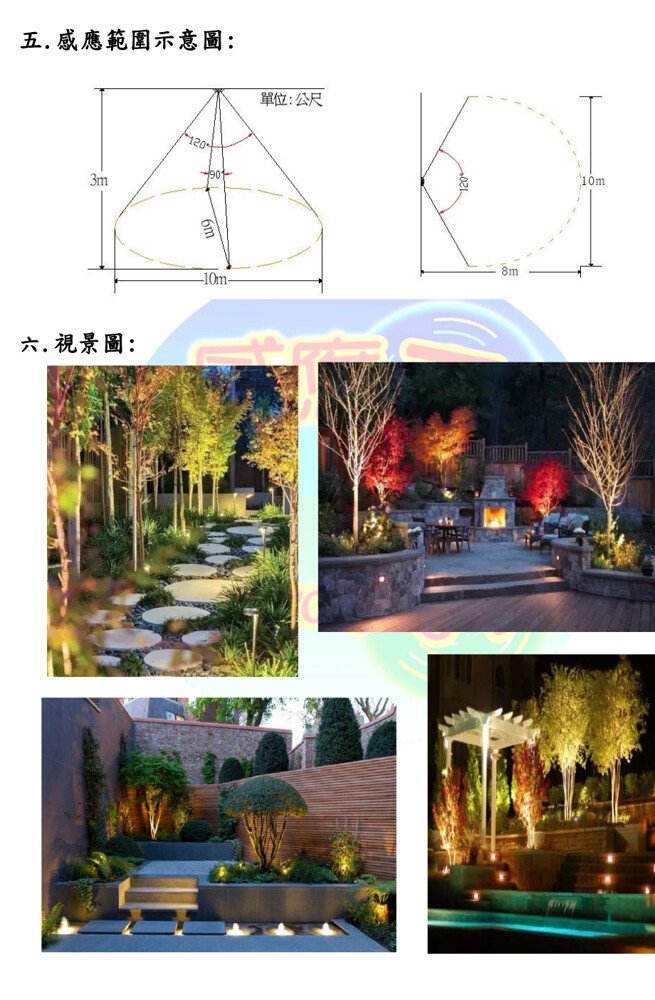 9.適合場所:戶外停車場、招牌、走道、庭院、門口、陽台及戶外展示燈…等。