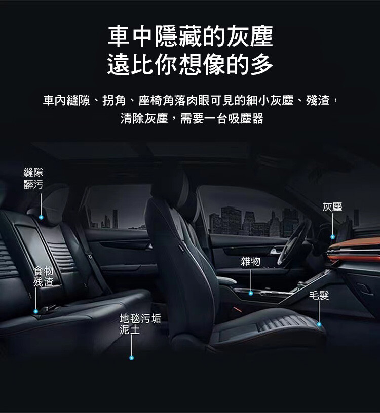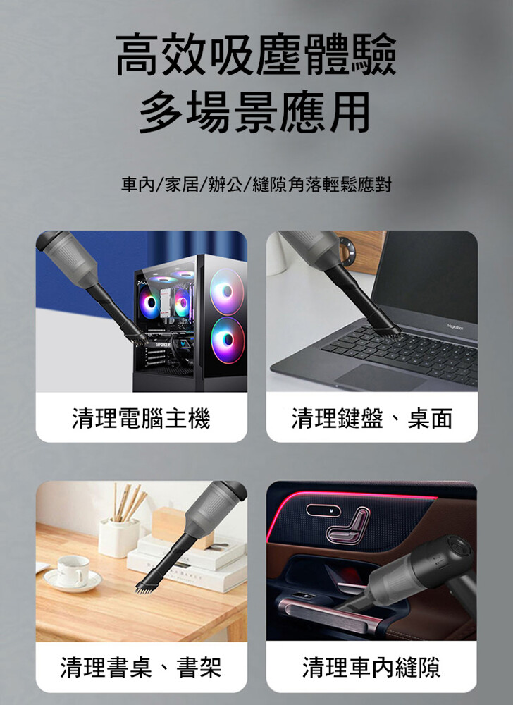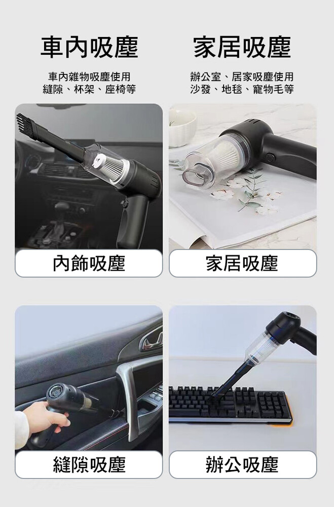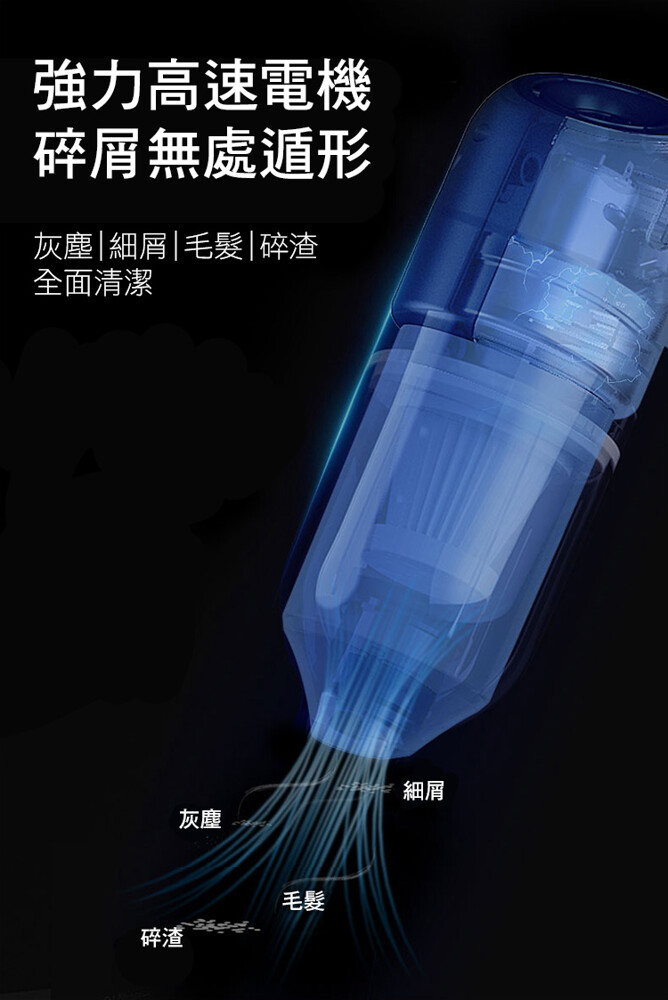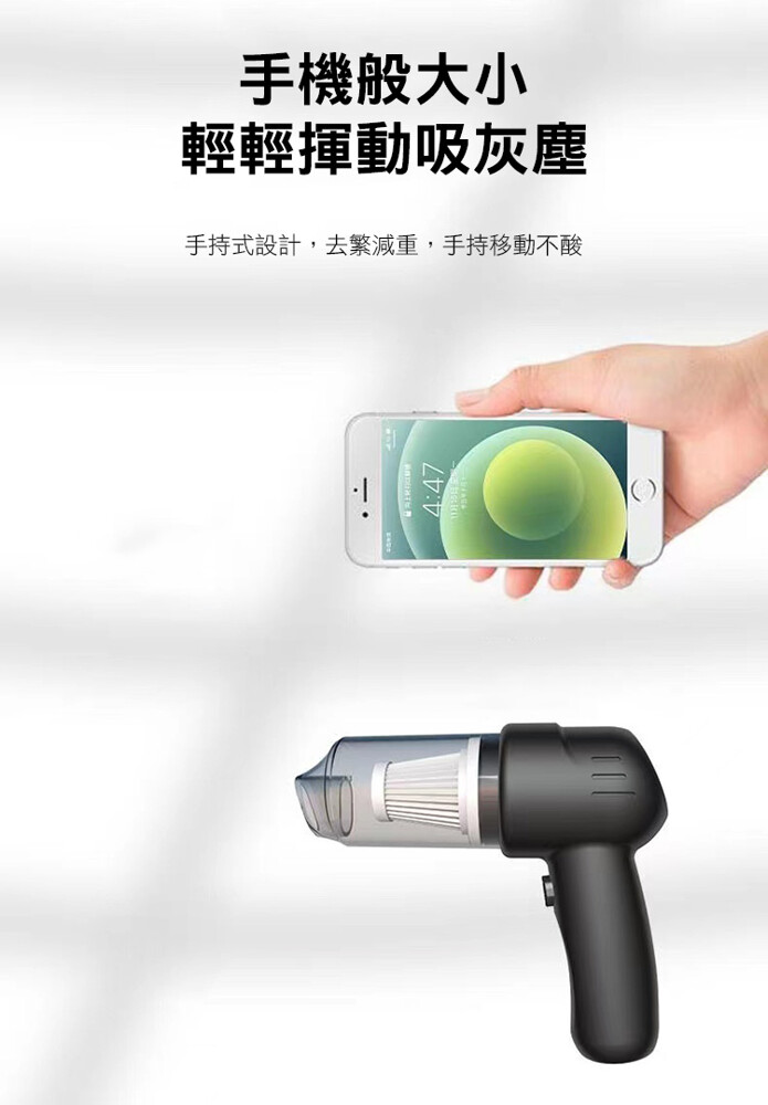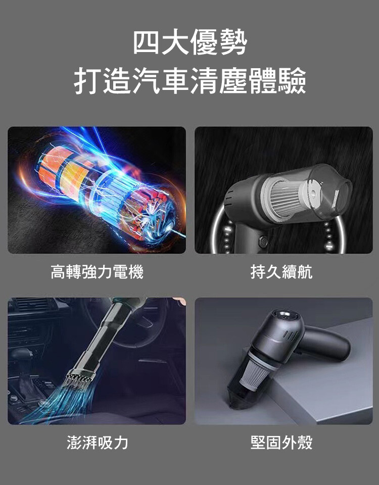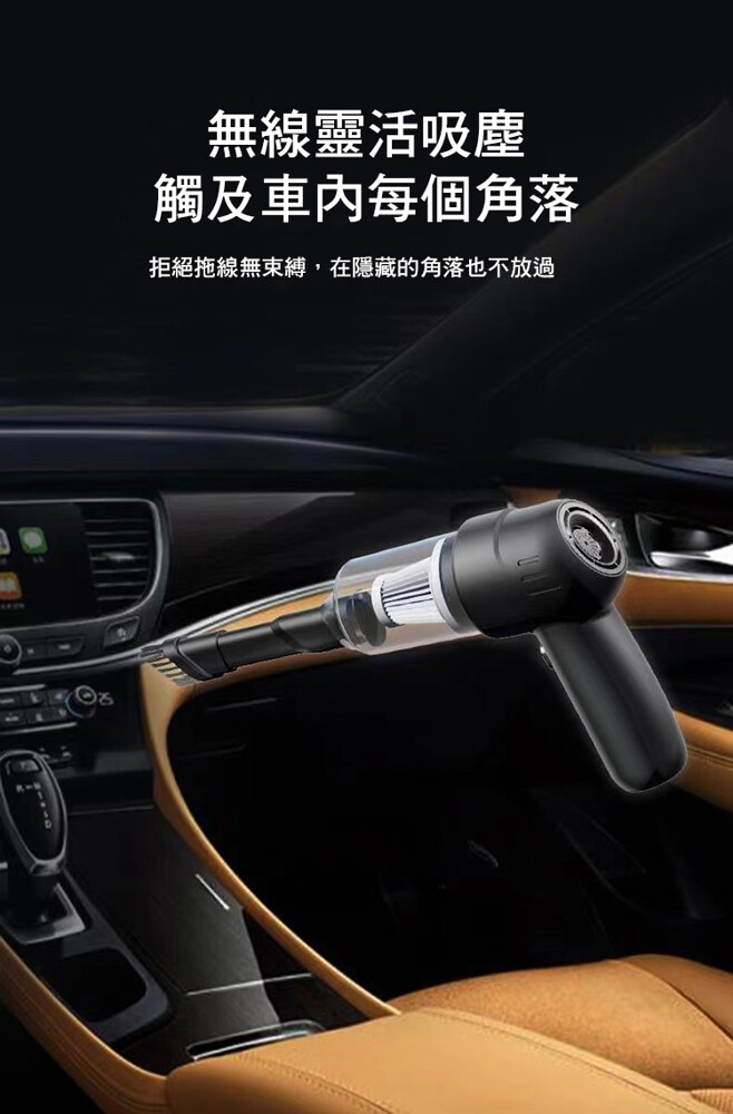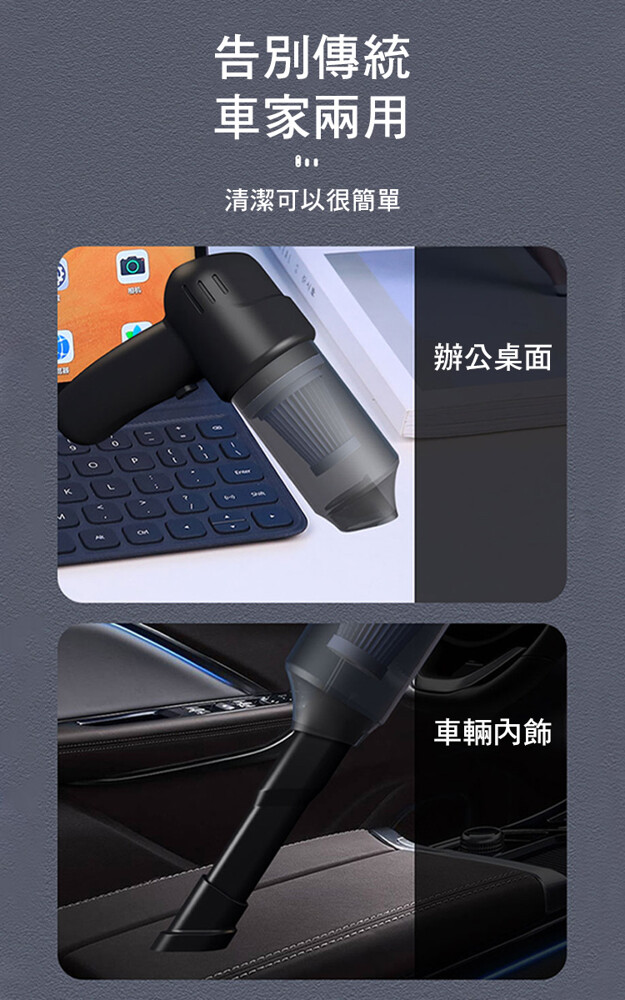 大容量鋰電池,超強續航,無線束縛,讓車/家隨時乾淨;