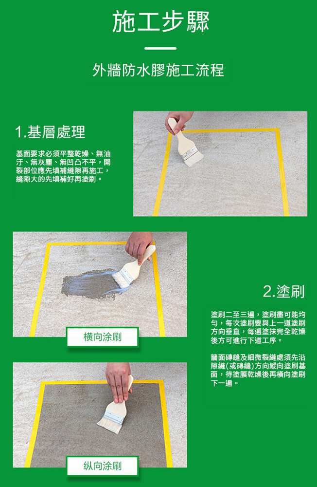 1.塗刷前,確保基面乾燥。