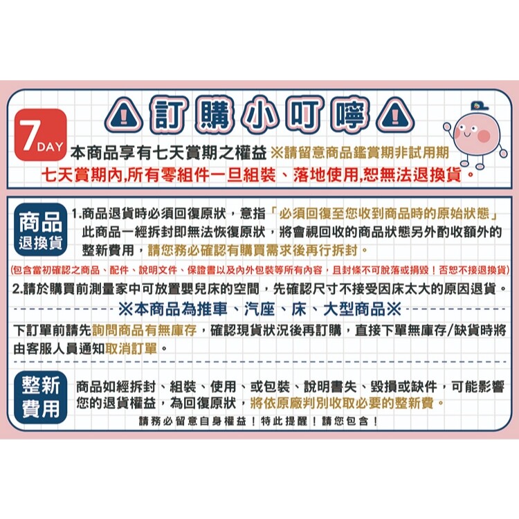 ※退換貨的商品必須為全新狀態且完整包裝。