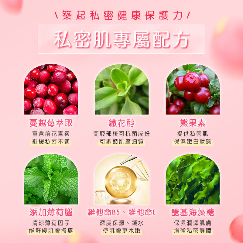 🔸蔓越莓加強呵護,長效維持潔淨清爽。