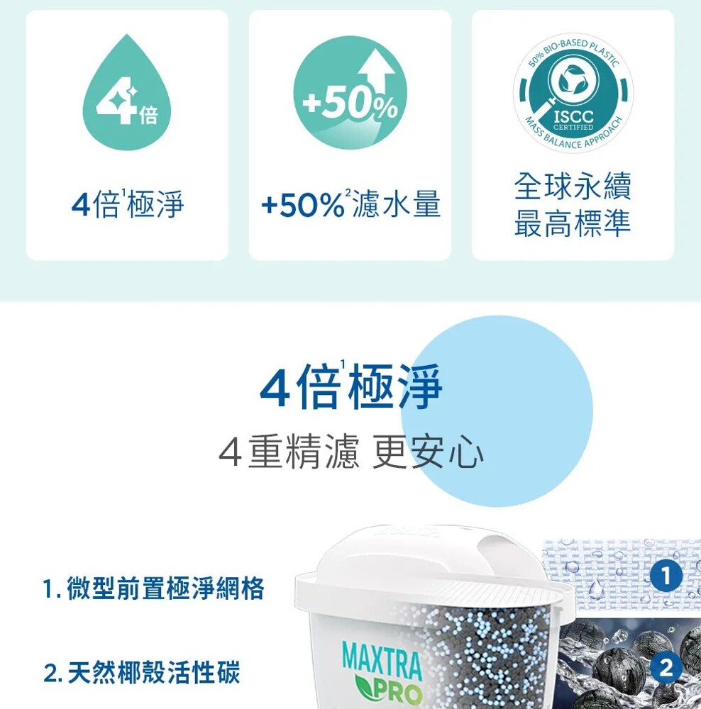 此外也搭配「BRITA Memo」功能。此智慧電子式濾芯更換顯示器可以省去您不知何時更換濾芯的煩惱,