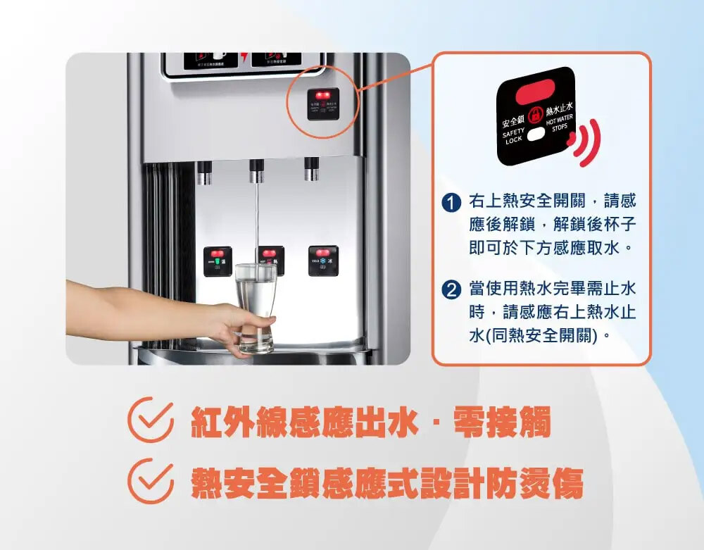 ►熱水有安全鎖,感應解鎖/止水,可避免小孩玩耍燙傷