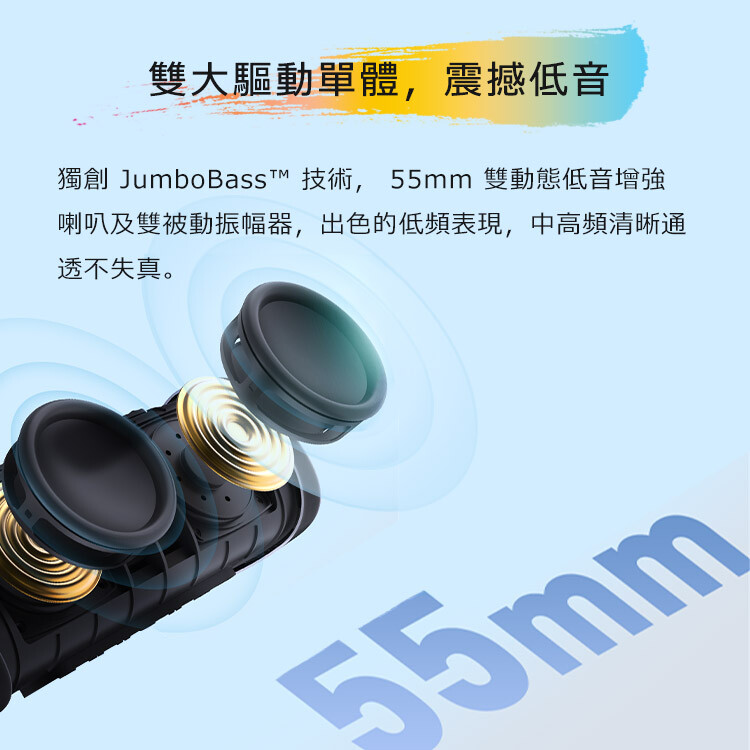 ■ 低音巨砲|內建雙被動輻射器,低音震撼有力
