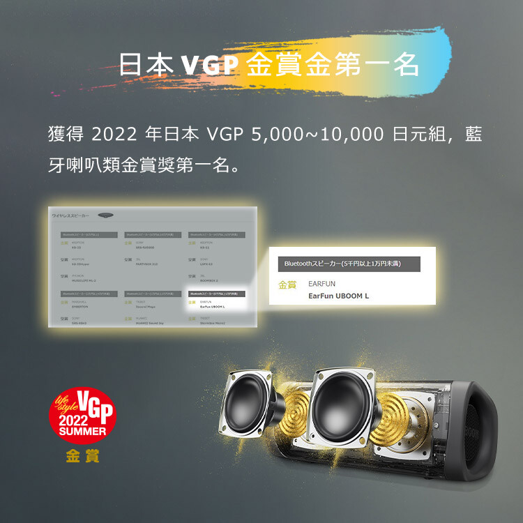■ 日本金獎|榮獲日本VGP藍牙喇叭金賞獎冠軍