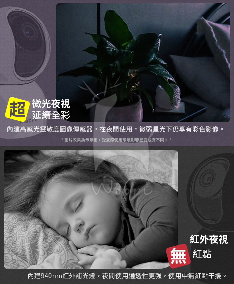 。超微光全彩夜視✨:夜間使用微弱星光下仍享有彩色影像,無紅色光點干擾
