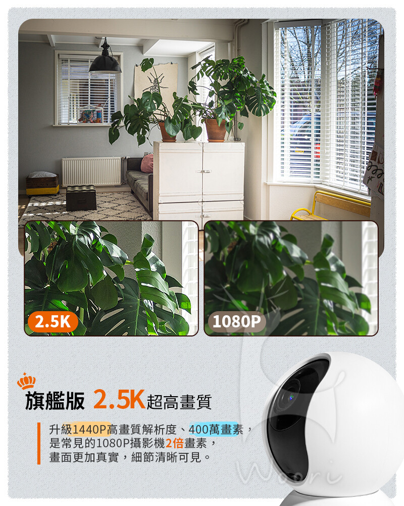 。1440P(2.5K)旗艦版超高畫質,400萬畫素✨,是常見的1080P攝影機2倍畫素,畫面清晰不含糊