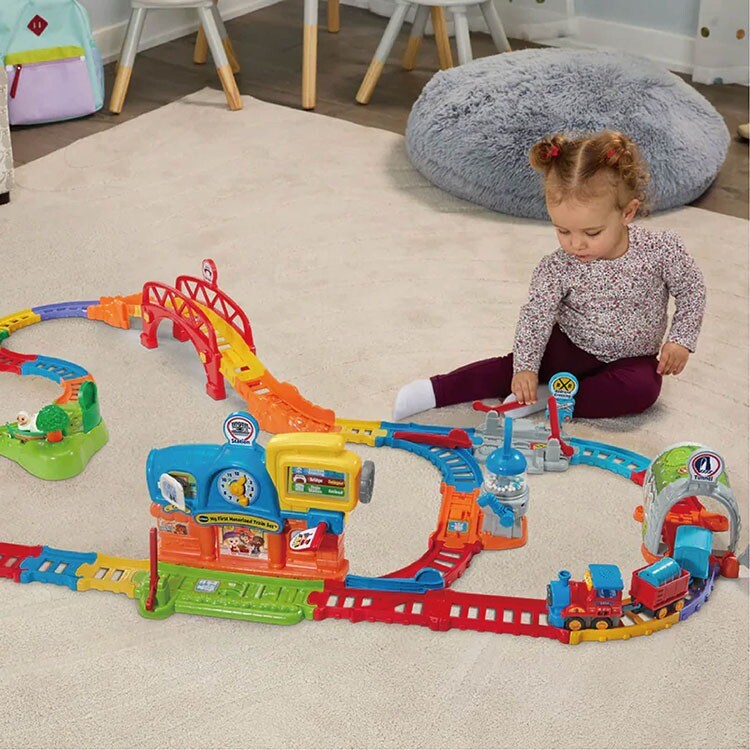 ●將小火車放上軌道,看它「嘟嘟」前進,開啟小小探險家的歡樂旅程!