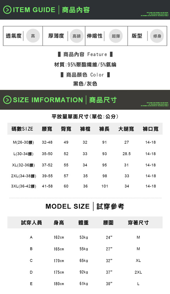 商品材質:95%聚酯纖維、5%氨綸
