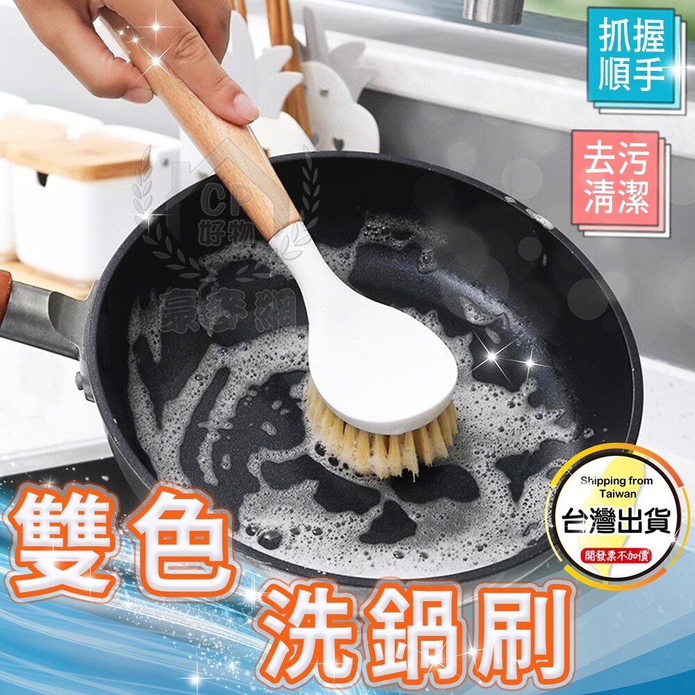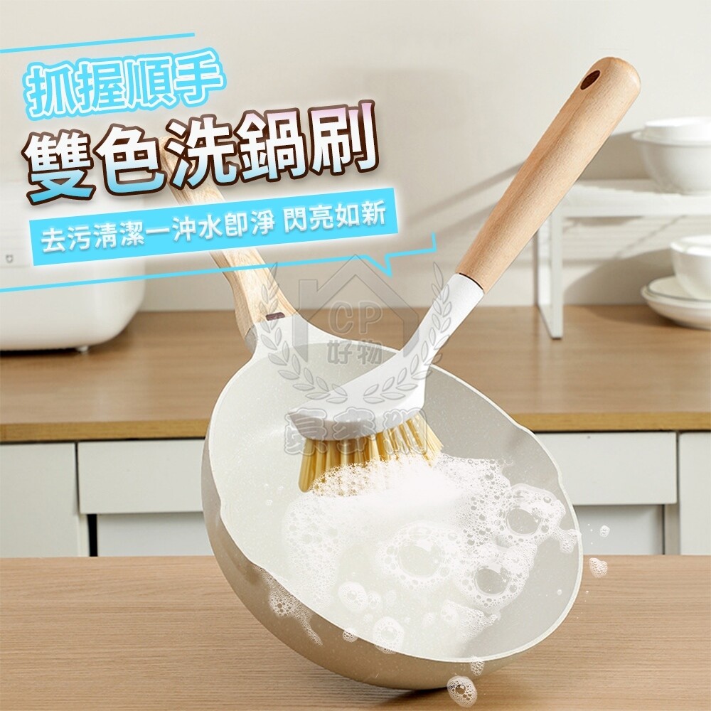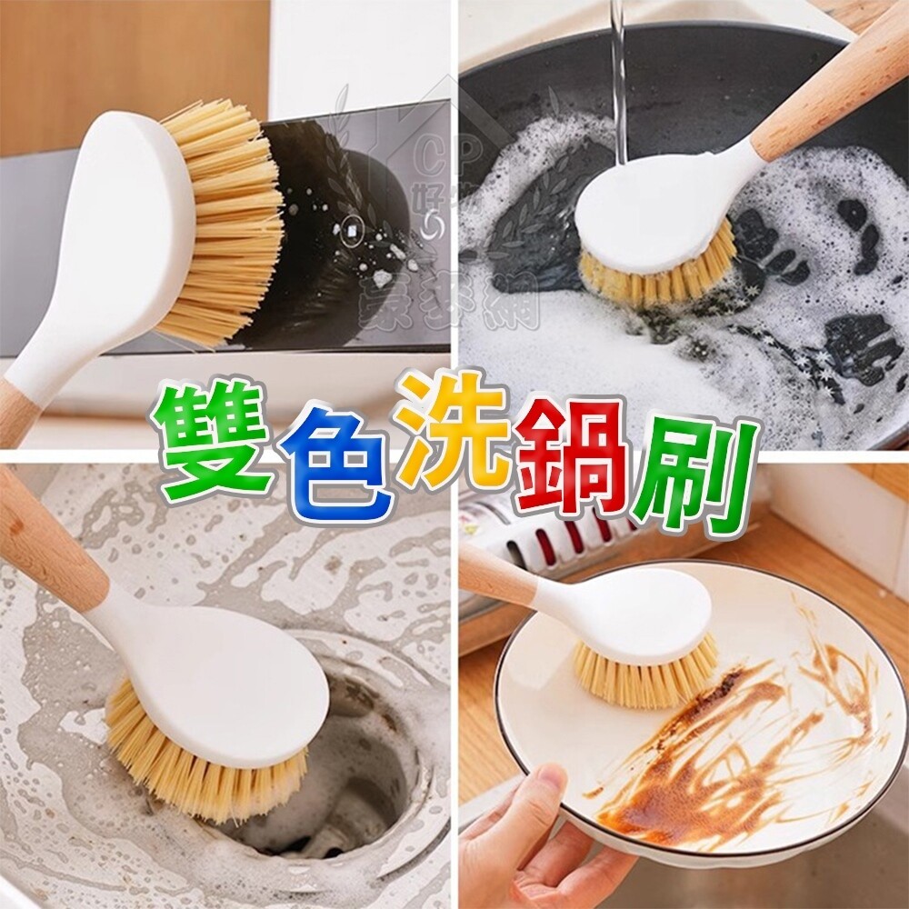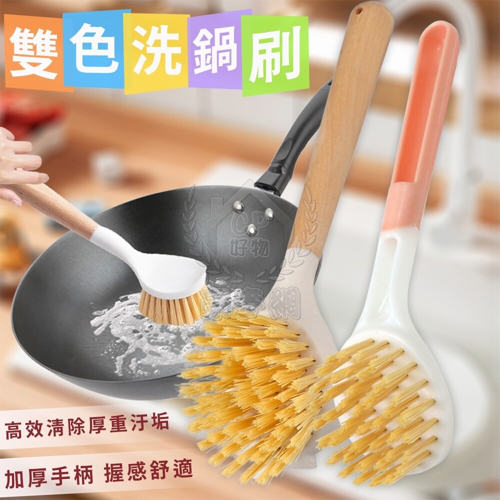 【雙色洗鍋刷】廚房鍋具清潔刷 不傷鍋不沾油鍋刷 長柄洗鍋刷☆