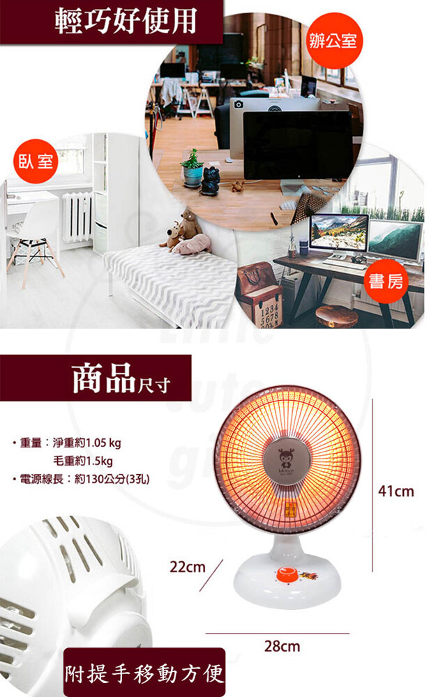 ◆ 品名:11吋速熱碳素電暖器LA-2501