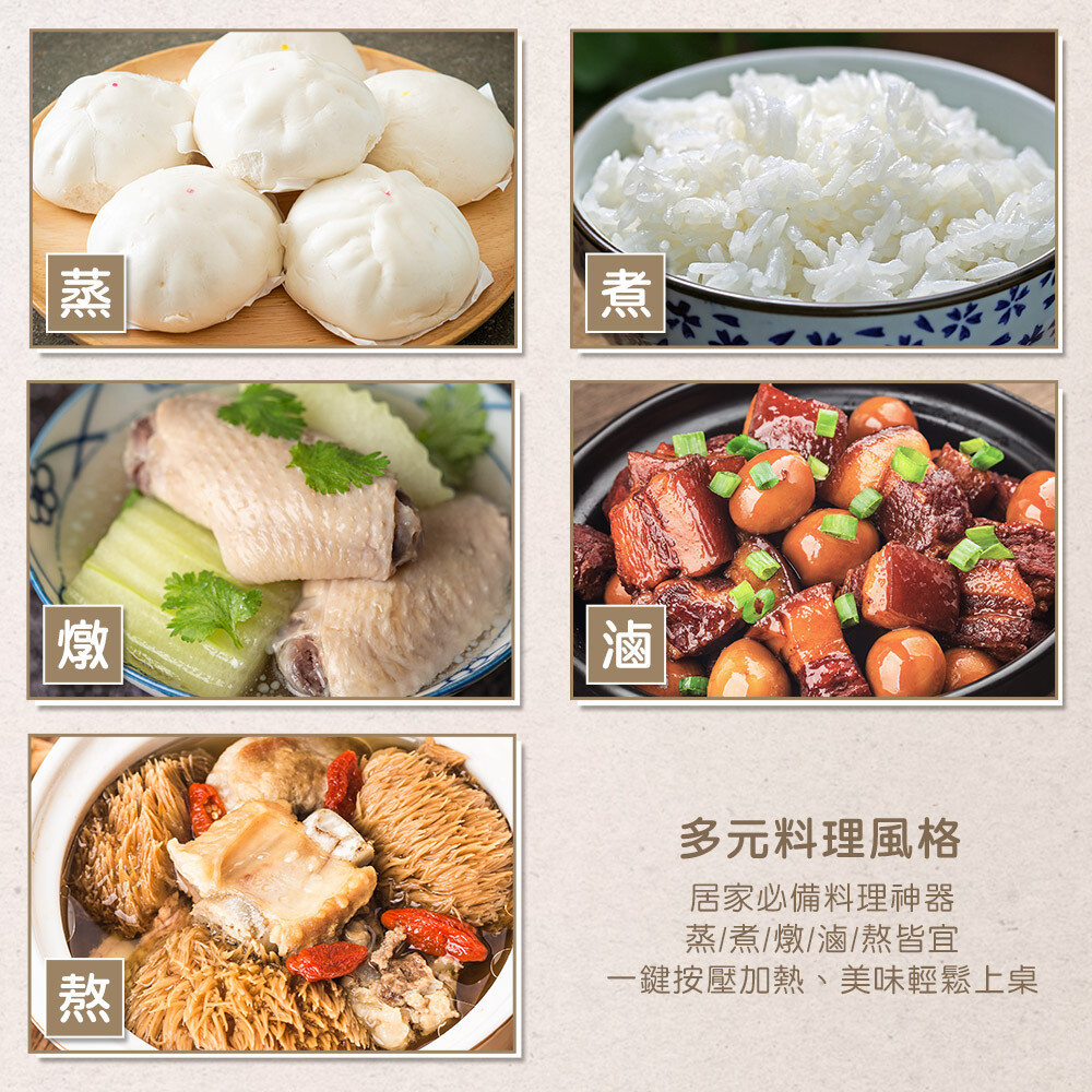 蒸氣循環加熱,保留食物鮮甜原味,蒸/煮/燉/滷/熬皆宜