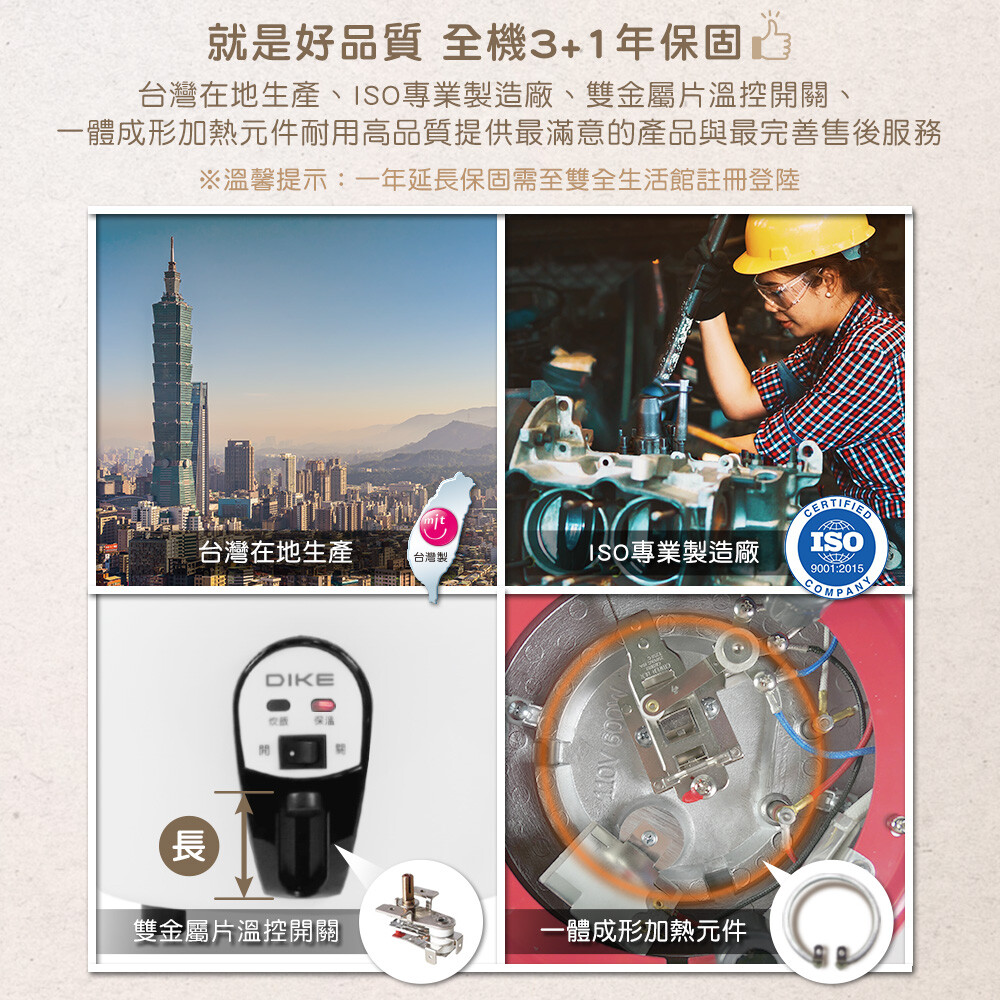 機器本體3+1年保固,加熱管10年保固,高品質安心使用