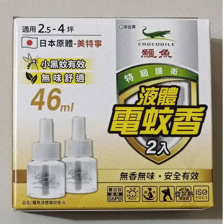 鱷魚A液體電蚊香 鱷魚液體電蚊香 2瓶裝 液體電蚊香 鱷魚46ml*2入