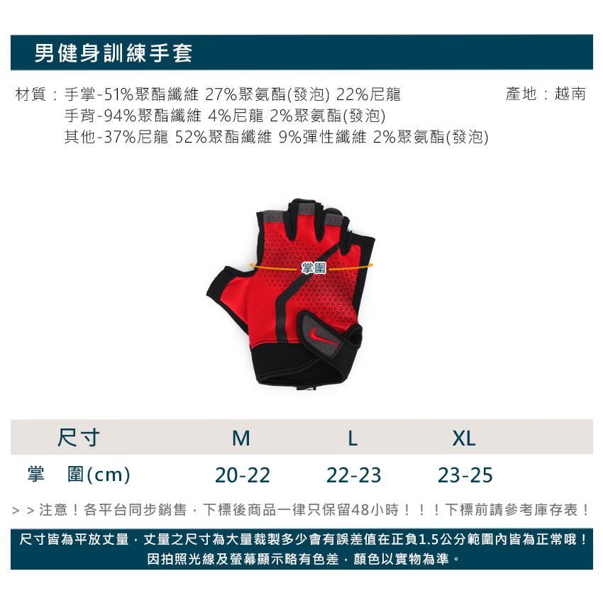 NIKE 男款健身訓練手套-一雙入 紅黑