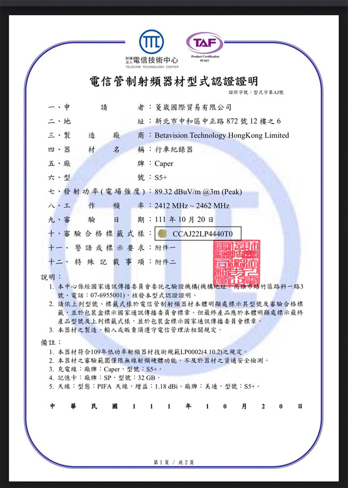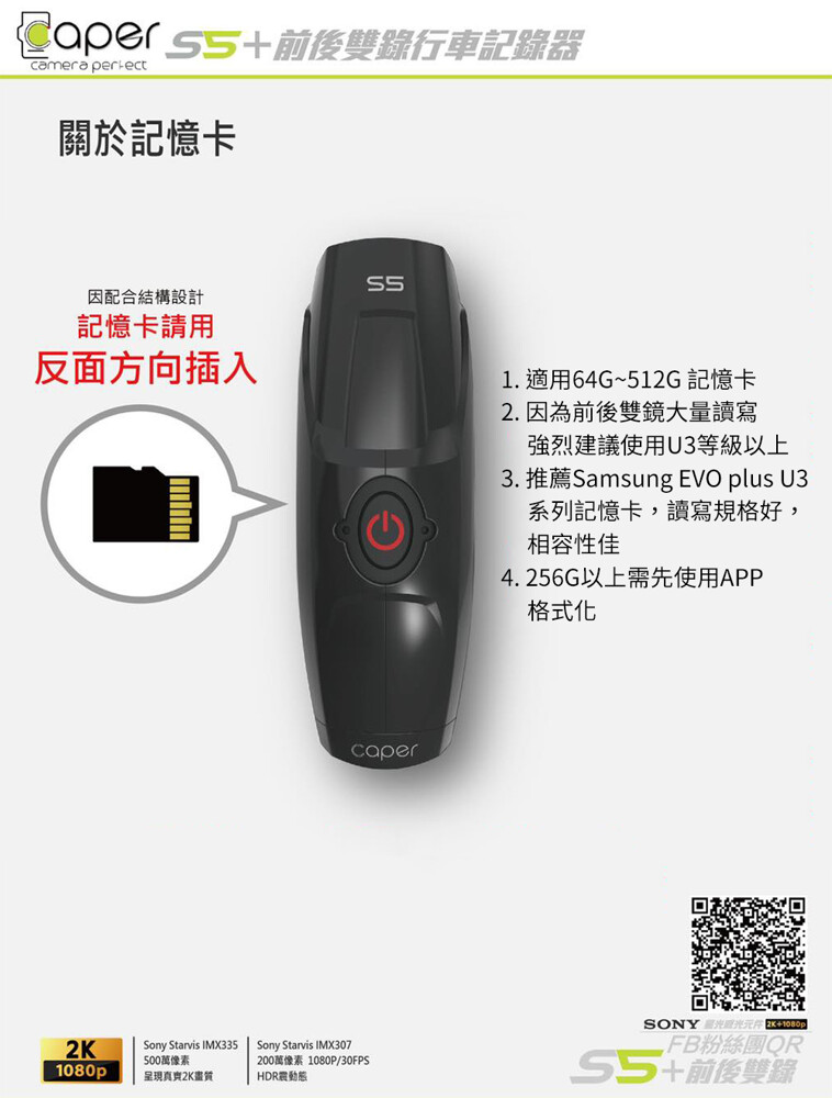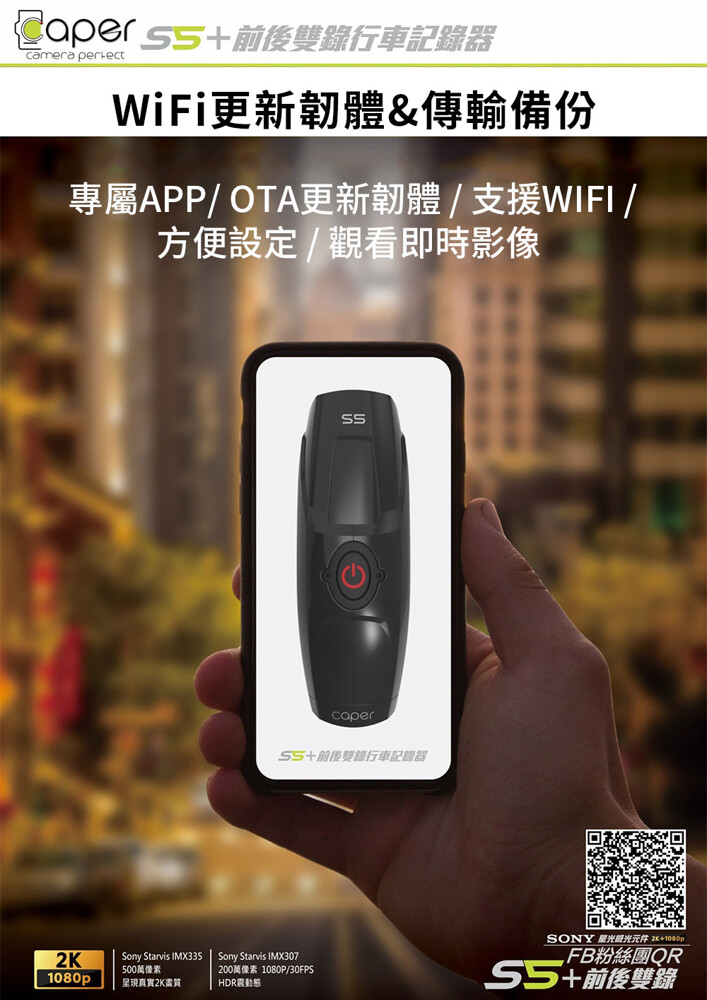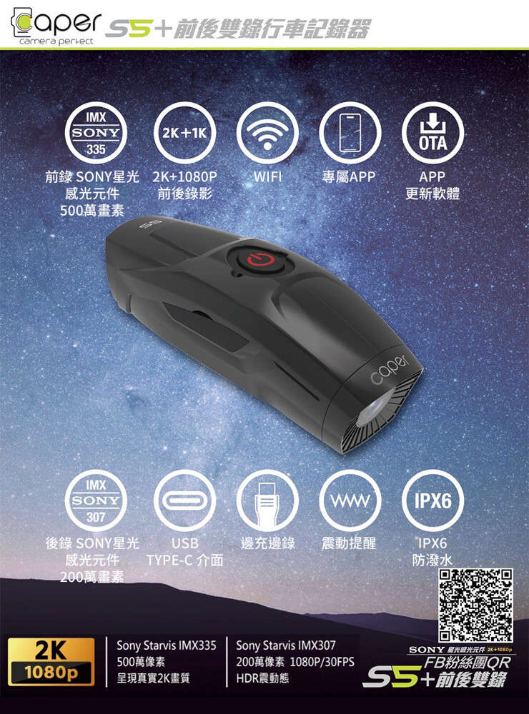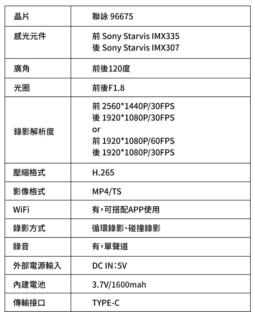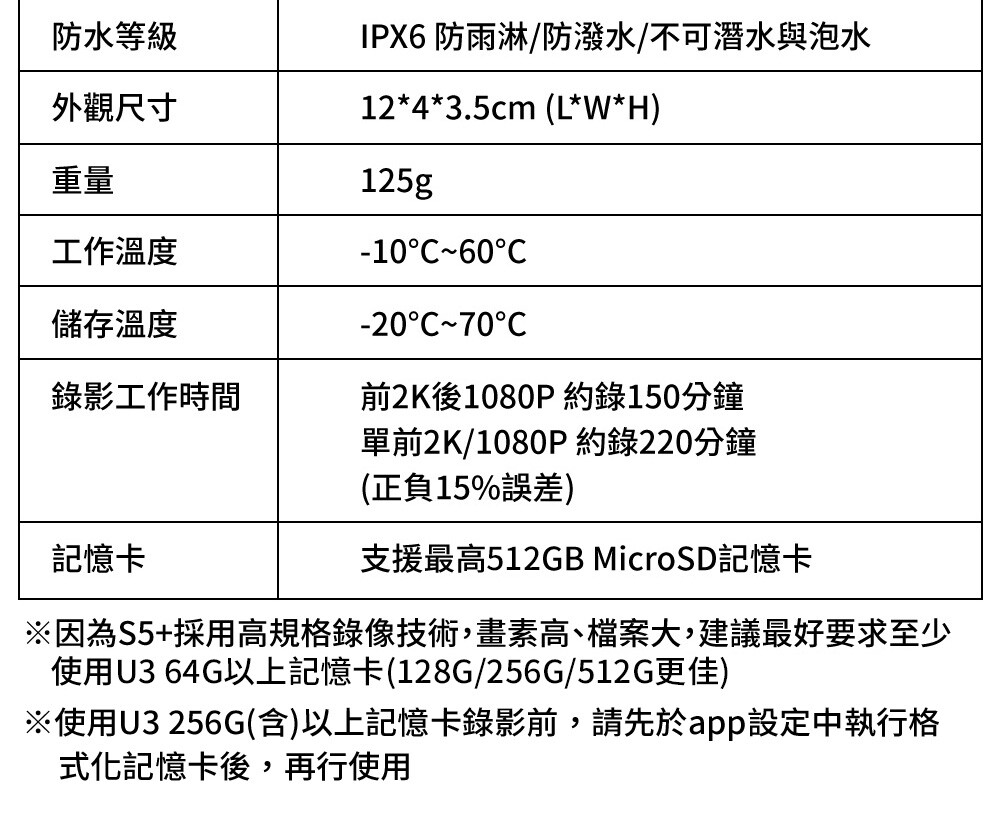 前2K/60fps後1080P/60fps 前後高畫質錄影
