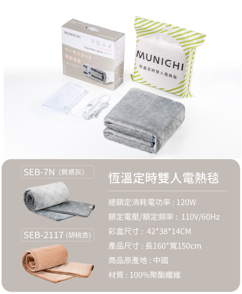 品名:【MUNICHI 沐尼黑】恆溫定時雙人電熱毯