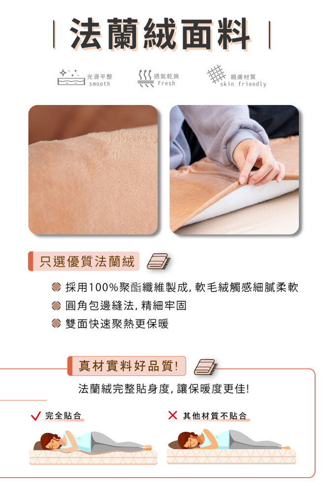 ●法蘭絨材質親膚保暖