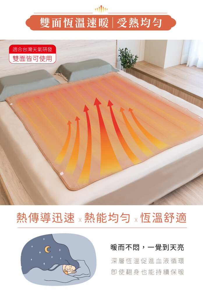 3. 建議入睡前調至"高溫模式"預熱30分鐘,入睡時調至低檔(5檔以下),以免燙傷
