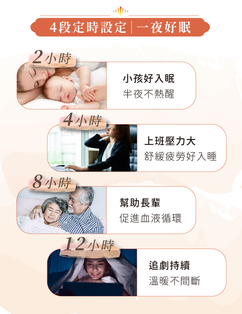 ●4段定時功能,溫暖不間斷