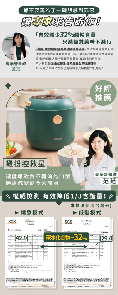 Q:AGiM減醣舒肥電子鍋,減醣模式可以煮五穀雜糧飯、糙米飯嗎?需要泡水?水量要自己調整嗎?