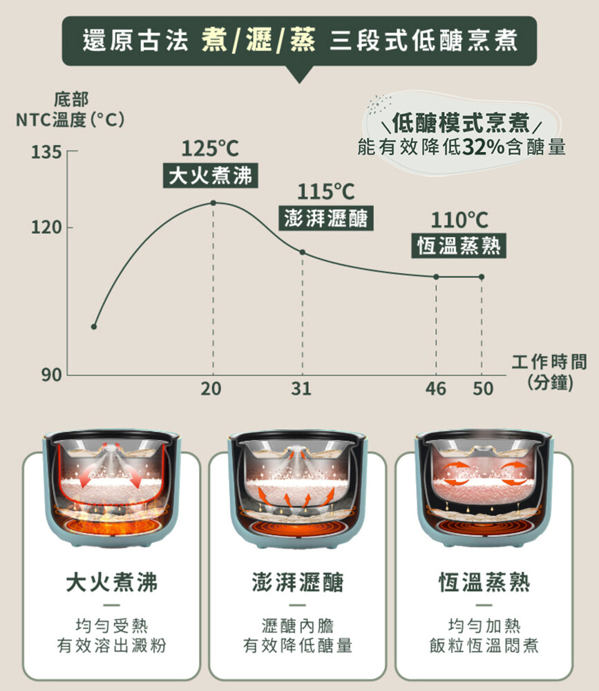 特別請注意,添加的食材和水量不得超過瀝醣內膽的最大刻度線位置,否者米湯有可能會從蒸氣口溢出。