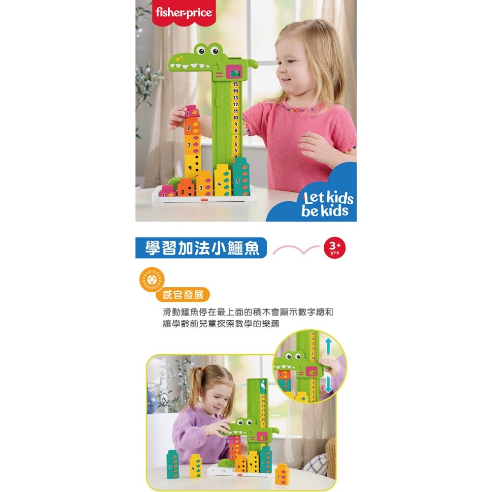●學齡前兒童可以透過""費雪學習加法小鱷魚""來享受學習的樂趣!