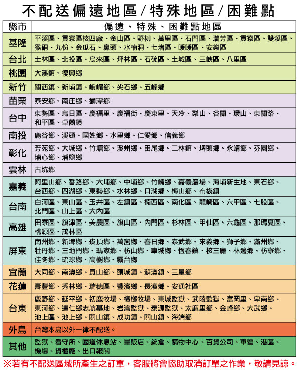 ※外島/離島/花東及部份偏遠地區不提供寄送,下單時請注意,請先詢問客服確認。