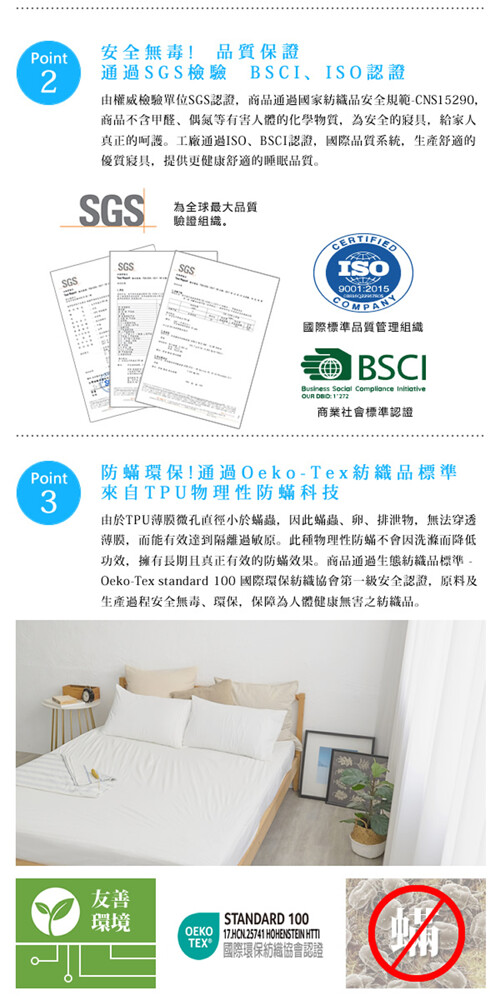 TPU薄膜可達到物理性防蹣與抗菌功效,特別適合台灣潮濕天氣。
