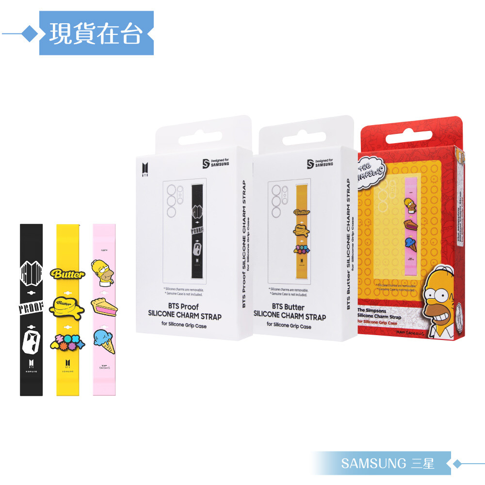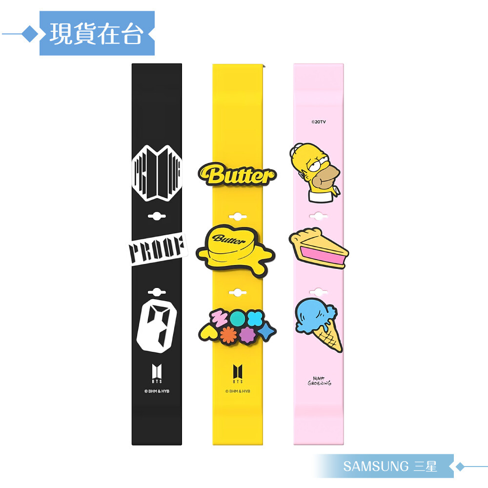 這3款「Samsung 三星 原廠公司貨 聯名指環帶 (盒裝) - 辛普森、BTS -Proof 黑、 BTS -Butter 黃 」,其中1款指環帶。