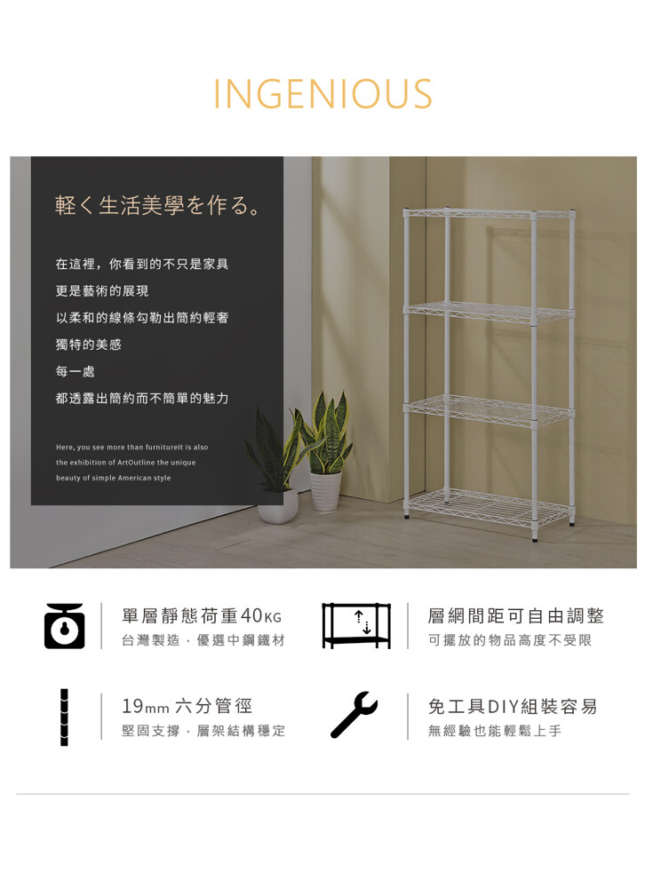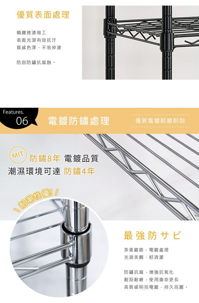 質感鐵力士層架,嚴選MIT中鋼鐵材,表面精緻做工,呈現高質感色澤、持久亮麗,防鏽抗腐蝕、承重力強,堅固耐用!