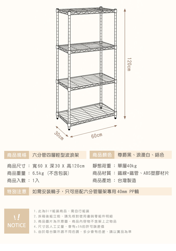 內容件數:六分管輕型四層波浪架x1,共1入/組