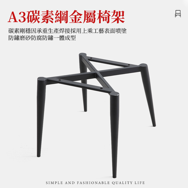 椅腳為金屬加粗烤漆,鐵製T型框架一體成形,加厚加粗超強承重。