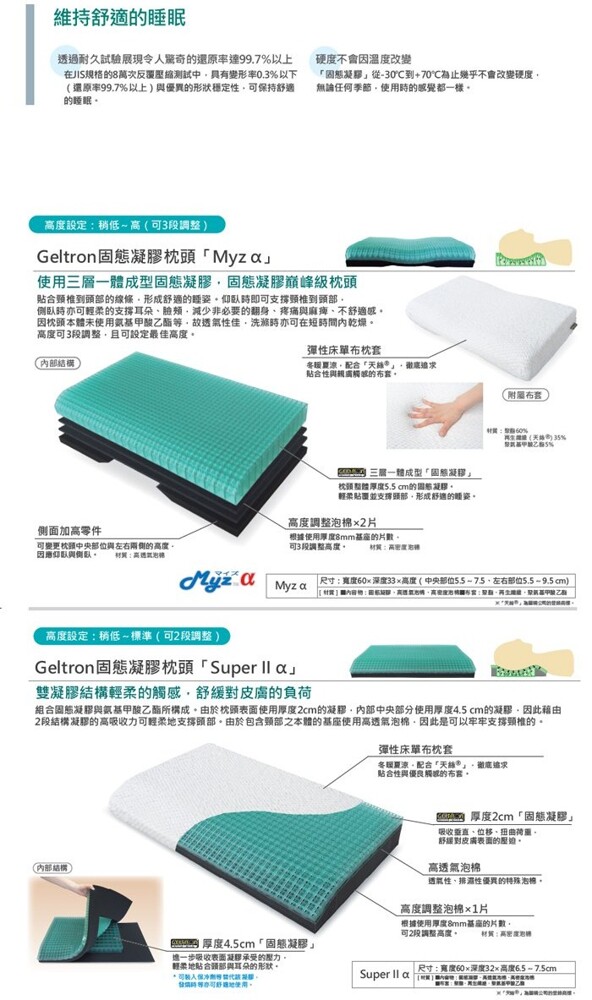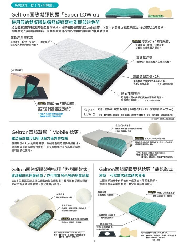 - 本體內部:Geltron固態凝膠+高密度泡棉+高透氣泡棉