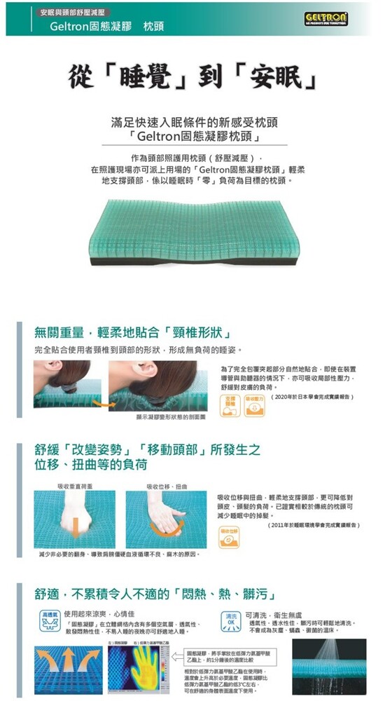◆ 品名:【海夫健康生活館】Geltron 固態凝膠枕頭 搭配天絲® 彈性枕套