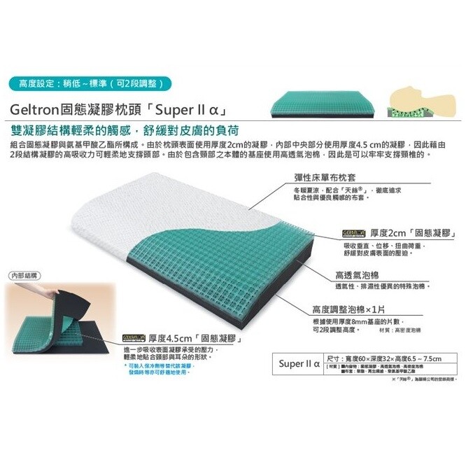 - 本體內部:Geltron固態凝膠+高透氣泡棉