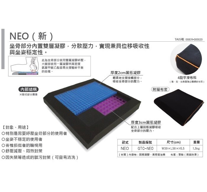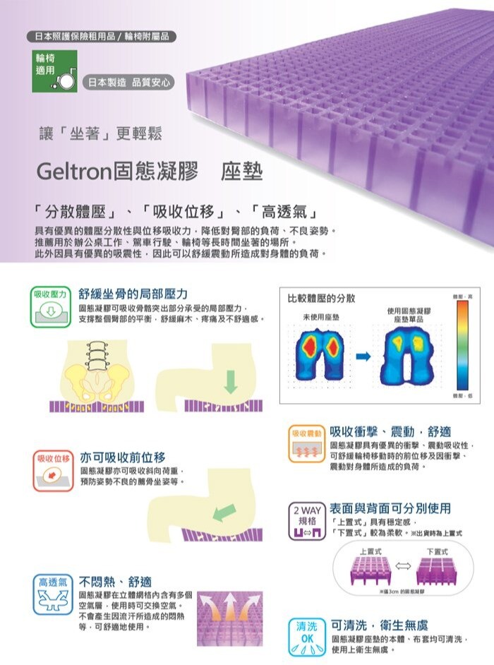 ◆ 品名:【海夫健康生活館】Geltron NEO 輪椅用 坐骨紓壓 固態凝膠座墊 附防滑布套(GTC-NEO)