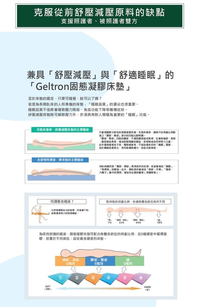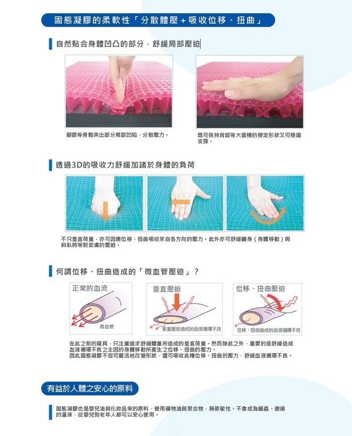 - 本體內部:Geltron固態凝膠+高密度泡棉